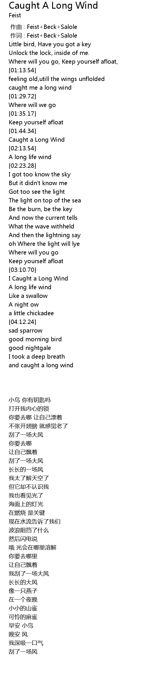 | [00:01.00] | 作词 : Feist+Beck+Salole |