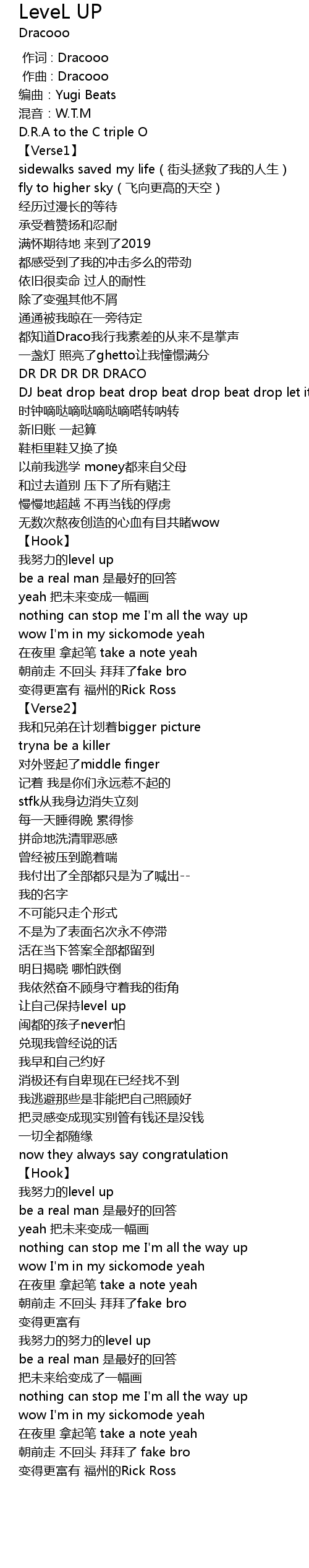 | [00:01.000] | 作曲 : Dracooo |