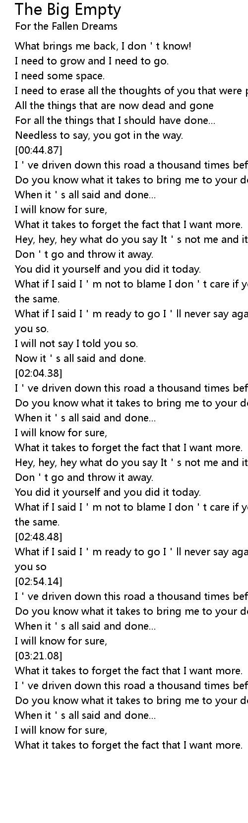 | [03:21.70] | What it takes to forget the fact that I want more. |