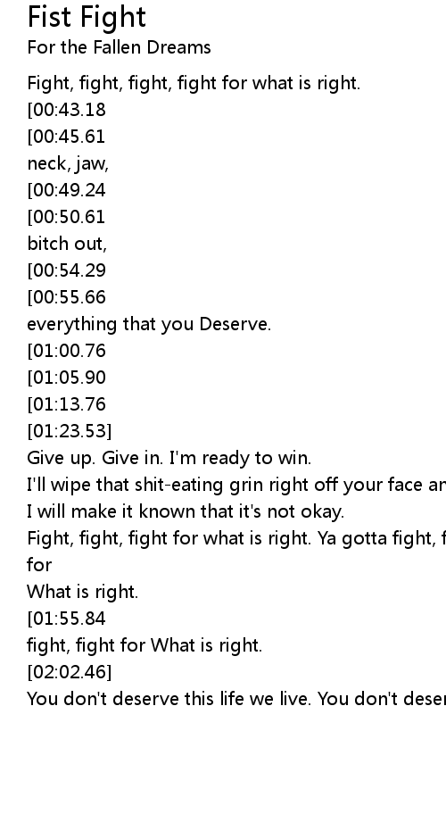 Fight, fight, fight for what is right. Ya gotta fight, fight, fight for |