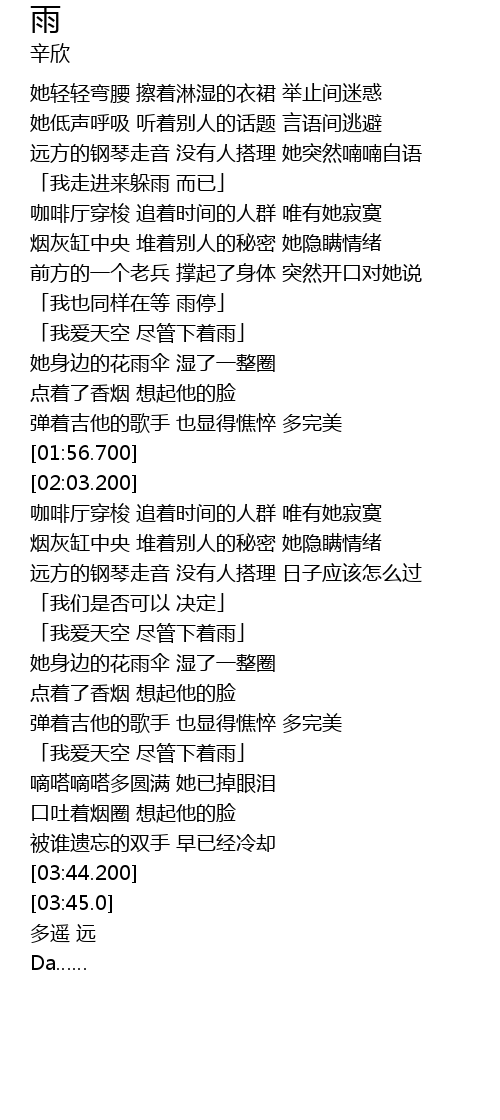 | [03:12.0] | 「我爱天空 尽管下着雨」 |