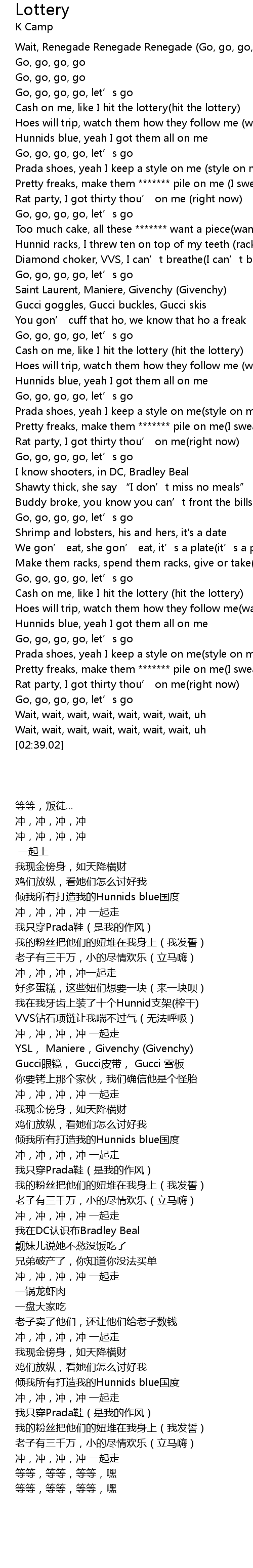 | [02:31.81] | Wait, wait, wait, wait, wait, wait, wait, uh |