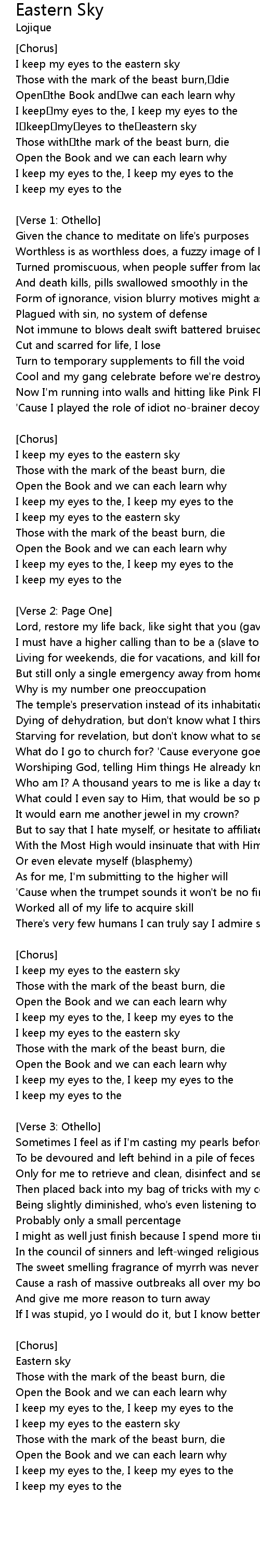 | I keep my eyes to the eastern sky | |