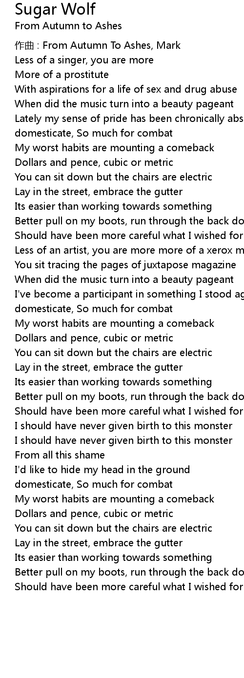 | zuò qǔ : From Autumn To Ashes, Mark | |