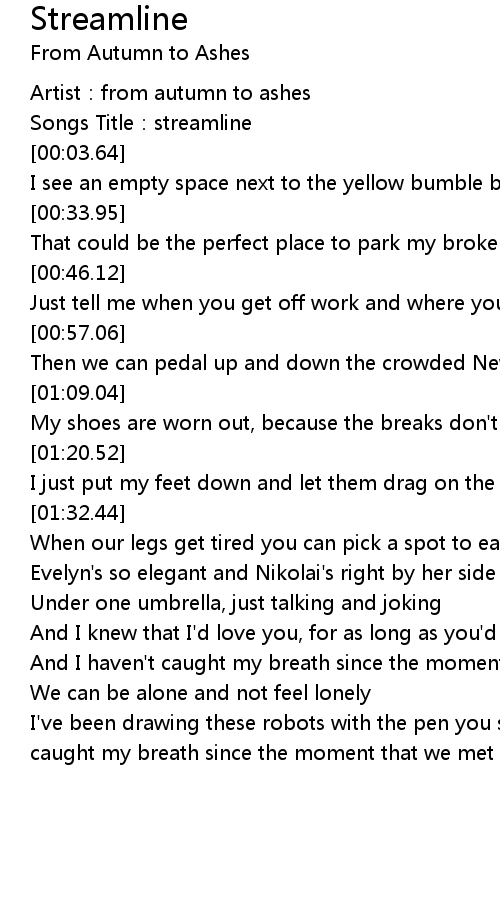 | [01:11.41] | My shoes are worn out, because the breaks don' t function |