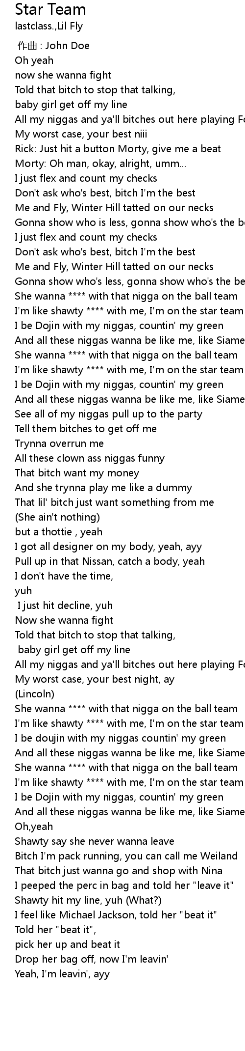 | [00:58.31] | I'm like shawty **** with me, I'm on the star team |