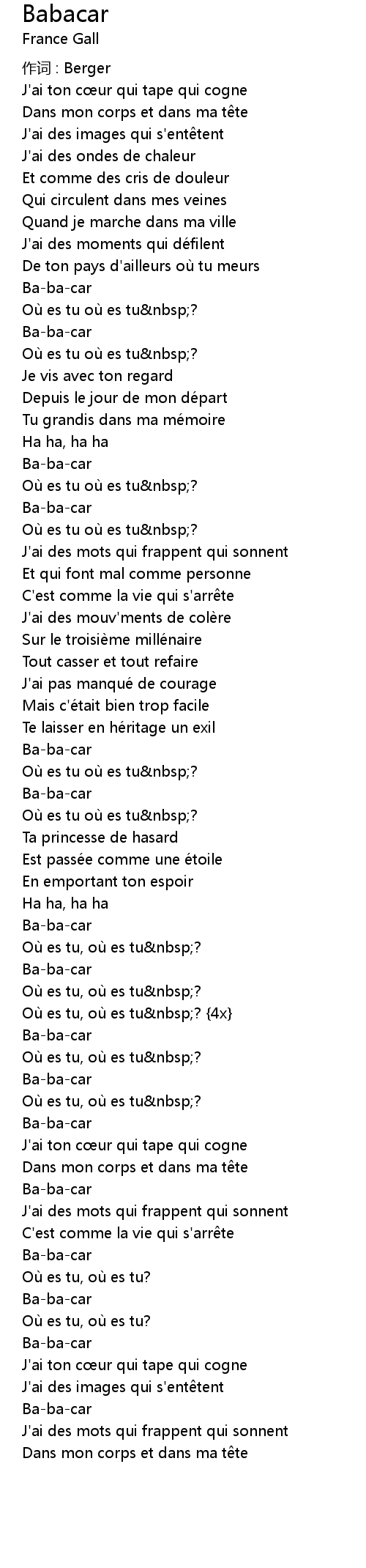 | 作词 : Berger | |