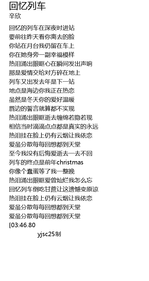 | [03:13.76] | 回忆列车倒吃甘蔗让这遗憾变原谅 |