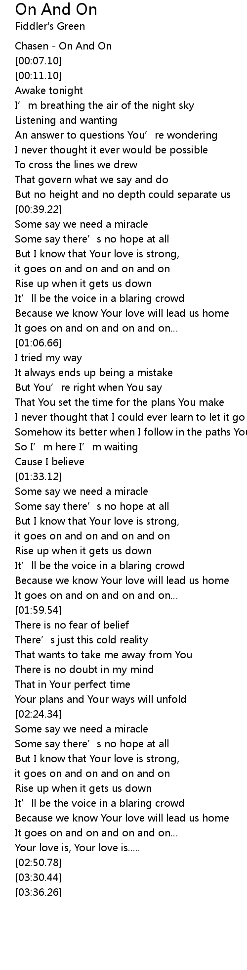 | [01:54.78] | It goes on and on and on and on |