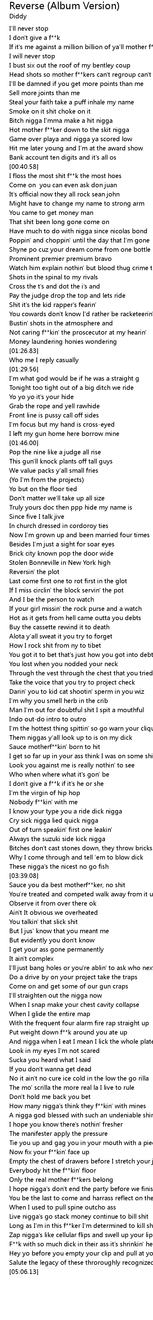 | [04:42.39] | I hope nigga's don't end the party before we finish the song |