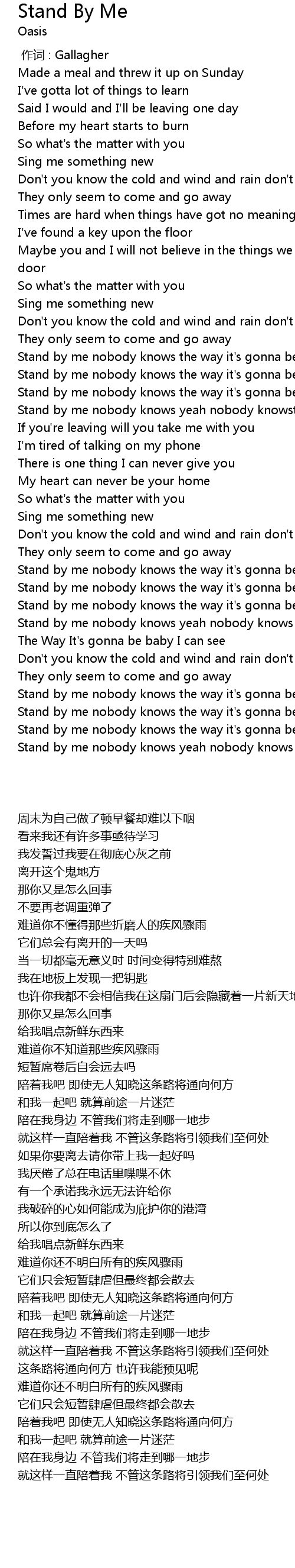 | [05:31.580] | Stand by me nobody knows yeah nobody knows the way it' s gonna be |