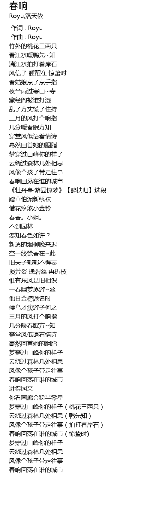 | [00:00.000] | zuo ci : Royu |