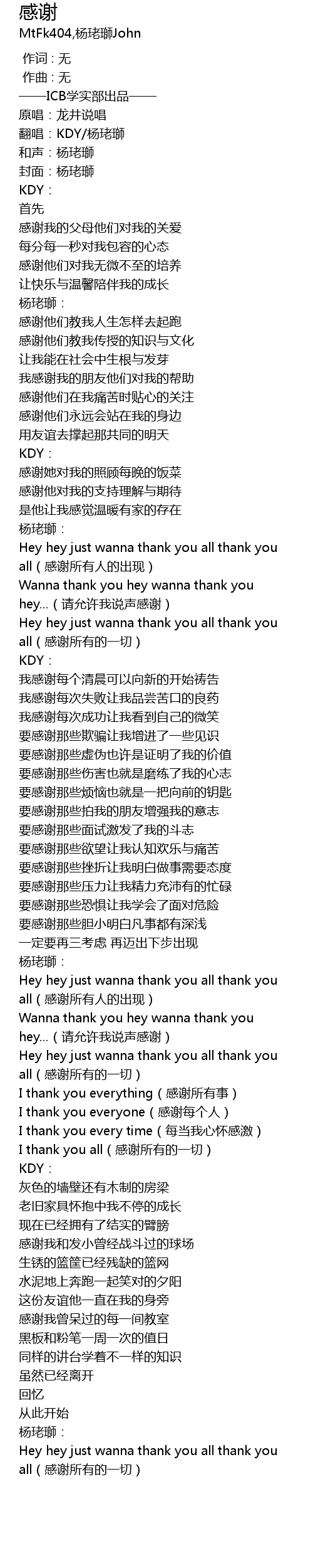 | [03:09.55] | Hey hey just wanna thank you all thank you all(感谢所有的一切) |