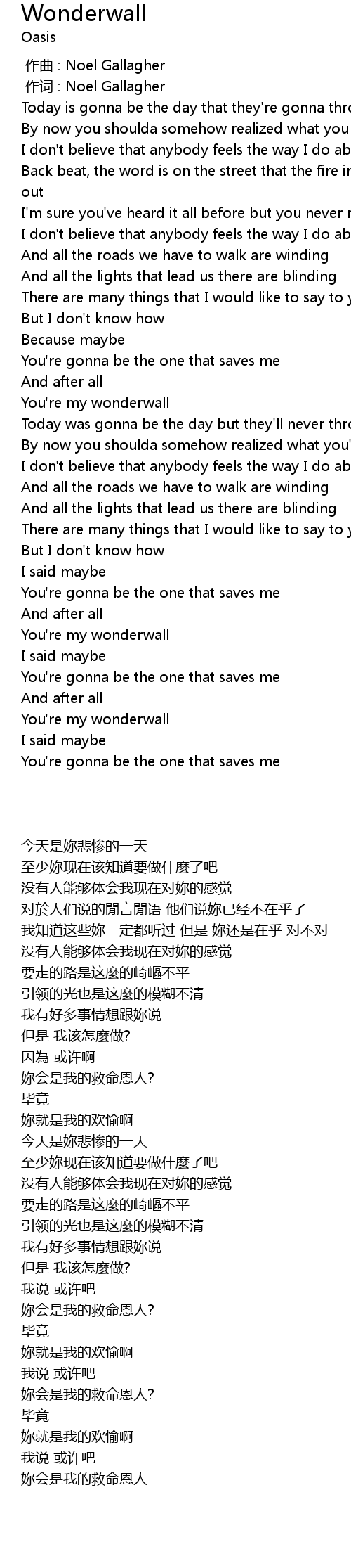 | [02:53.000] | You're my wonderwall |