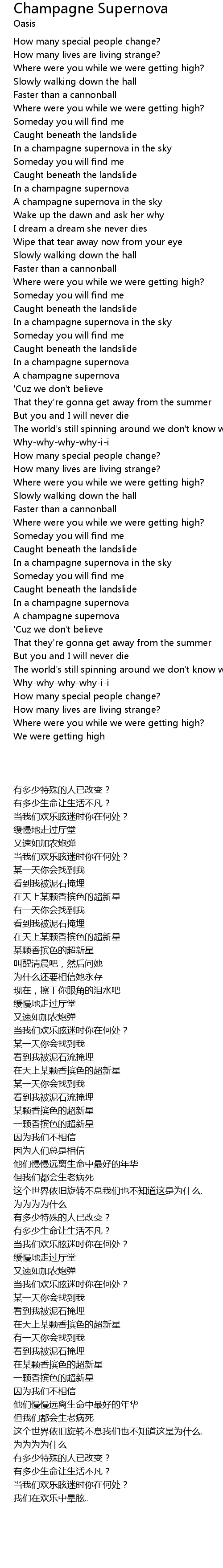In a champagne supernova in the sky |