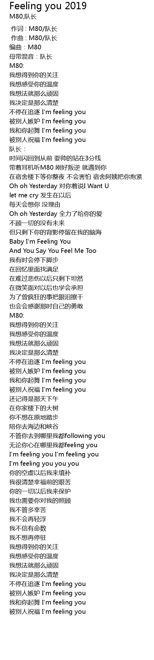 | [02:19.69] | I' m feeling you I' m feeling you |