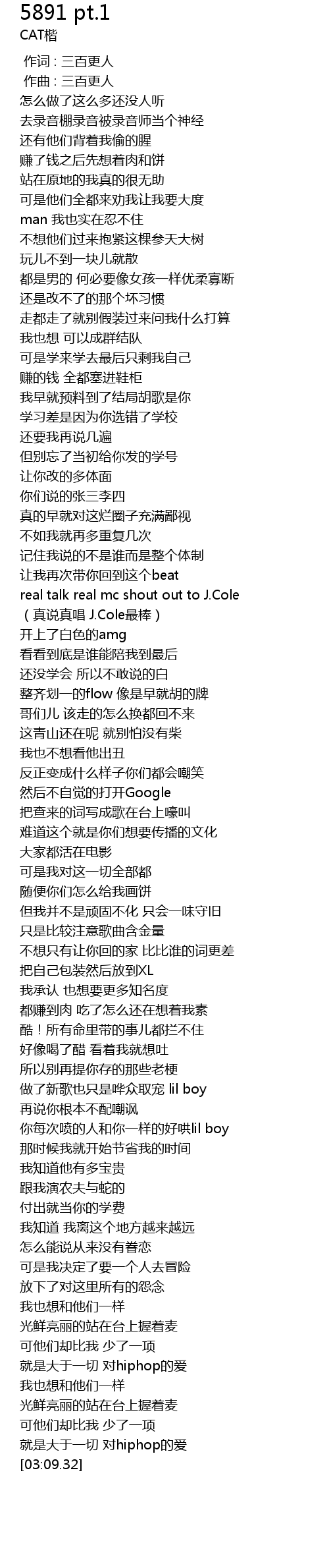 | [03:05.04] | 就是大于一切 对hiphop的爱 |