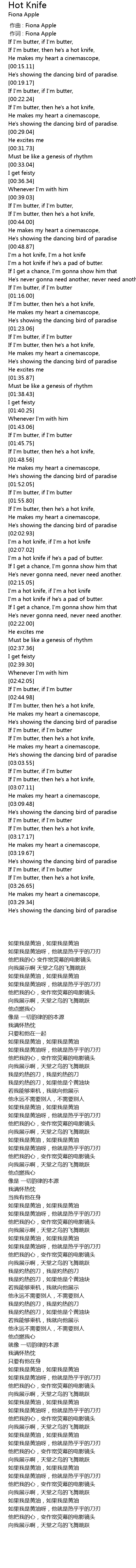 | [02:03.99] | I'm a hot knife, if I'm a hot knife |