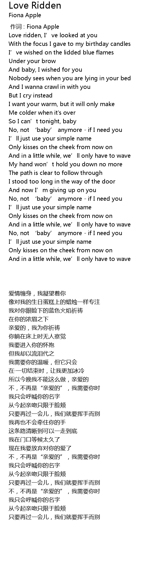 | [00:14.029] | Love ridden, I' ve looked at you |