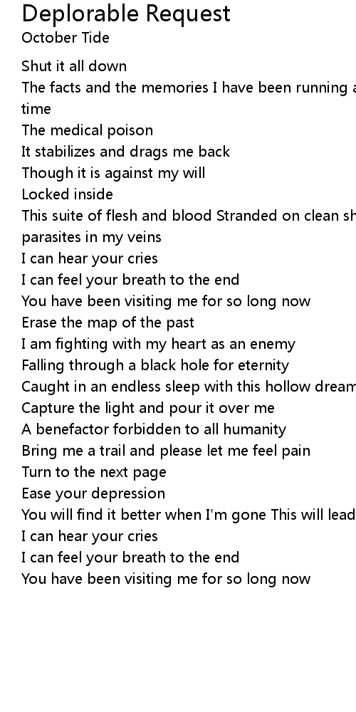 This suite of flesh and blood Stranded on clean sheets forever With the parasites in my veins |
