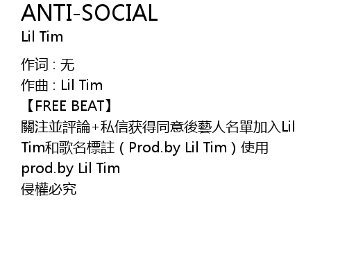| 關注並評論+私信获得同意後藝人名單加入Lil Tim和歌名標註(Prod.by Lil Tim)使用 | |