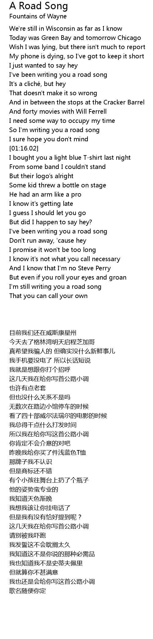 | [00:41.08] | I' ve been writing you a road song |