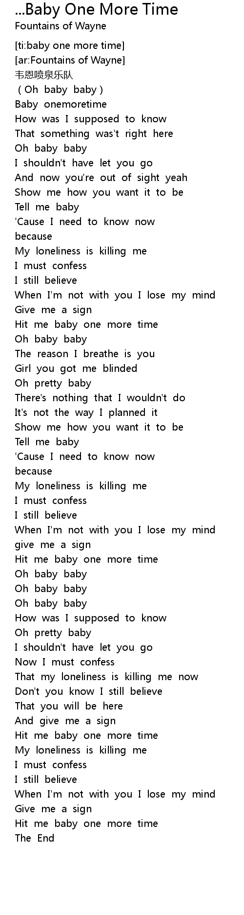 | [00:00.90] | Baby onemoretime |