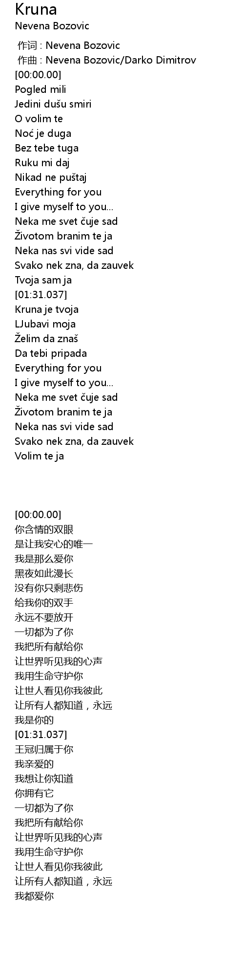 | [00:00.000] | 作曲 : Nevena Bozovic/Darko Dimitrov |
