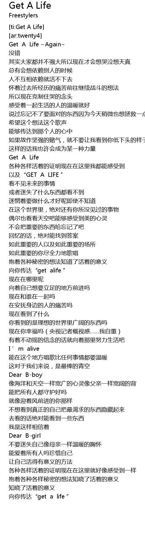 | [01:23.267] | yi ji" GET A LIFE " |