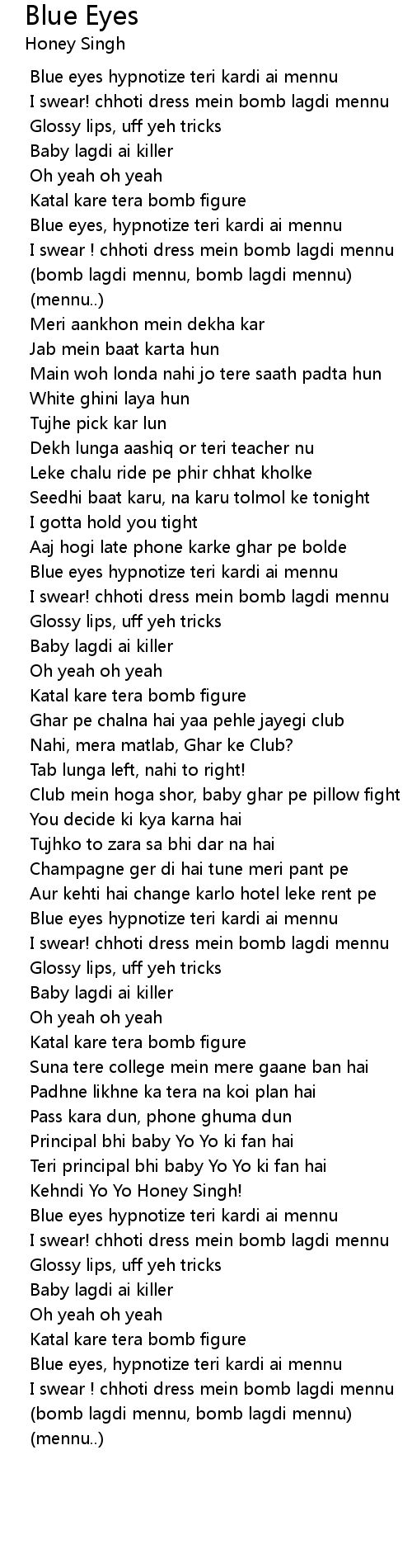 Blue eyes, hypnotize teri kardi ai mennu |