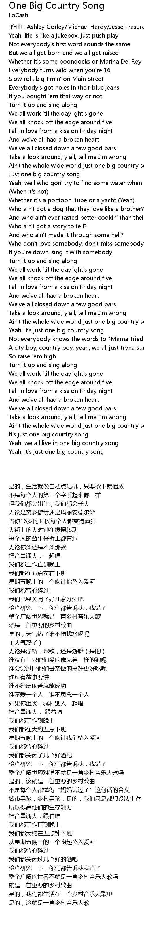 | [00:59.36] | Ain't the whole wide world just one big country song? |