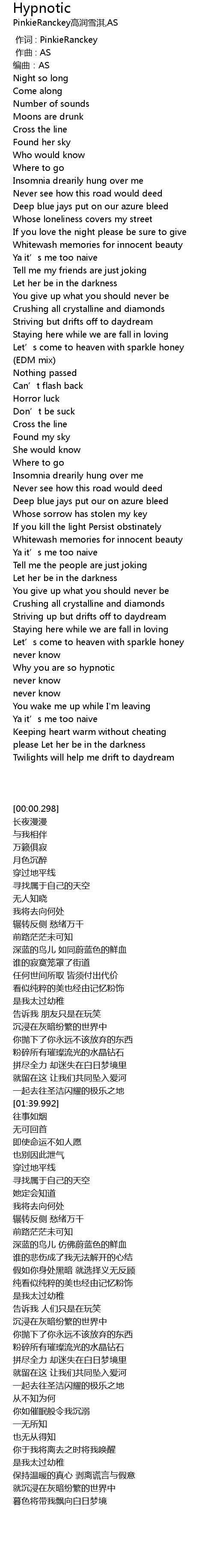 | [00:00.000] | zuo ci : PinkieRanckey |