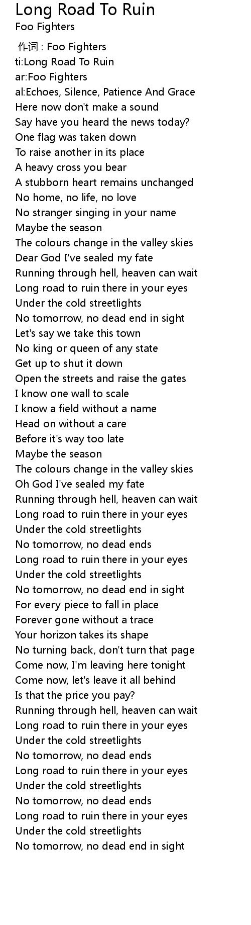 | [00:00.00] | ti:Long Road To Ruin |