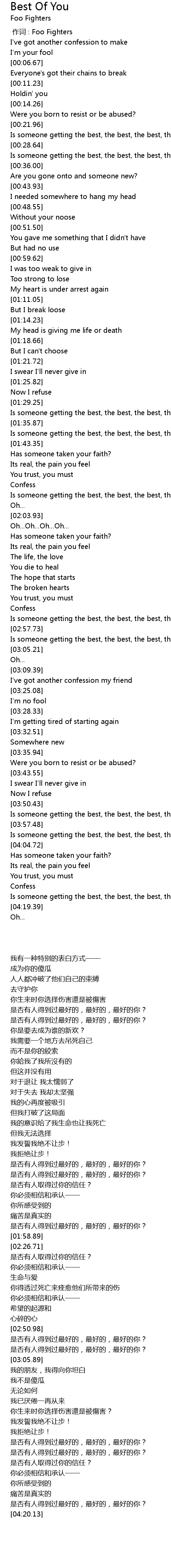 | [00:00.00] | zuò cí : Foo Fighters |