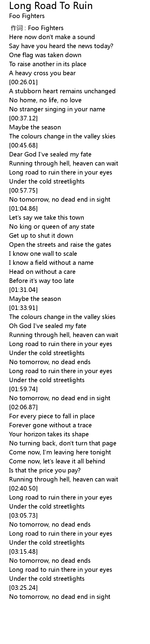 | [02:00.32] | No tomorrow, no dead end in sight |