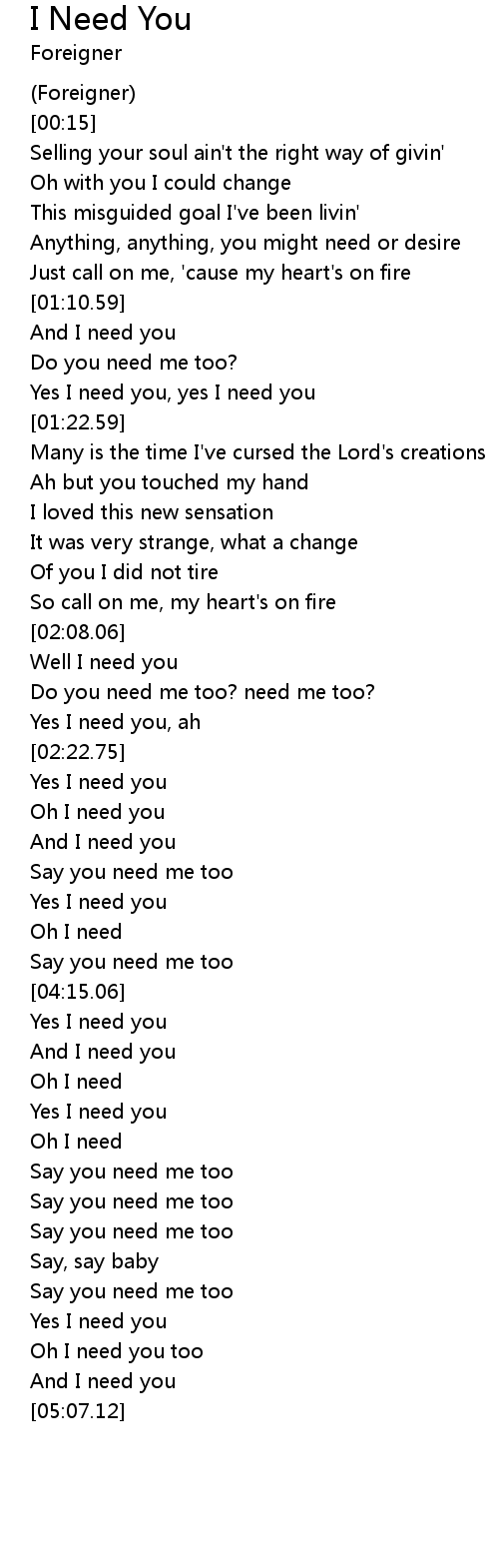 | [05:00.52] | Yes I need you |