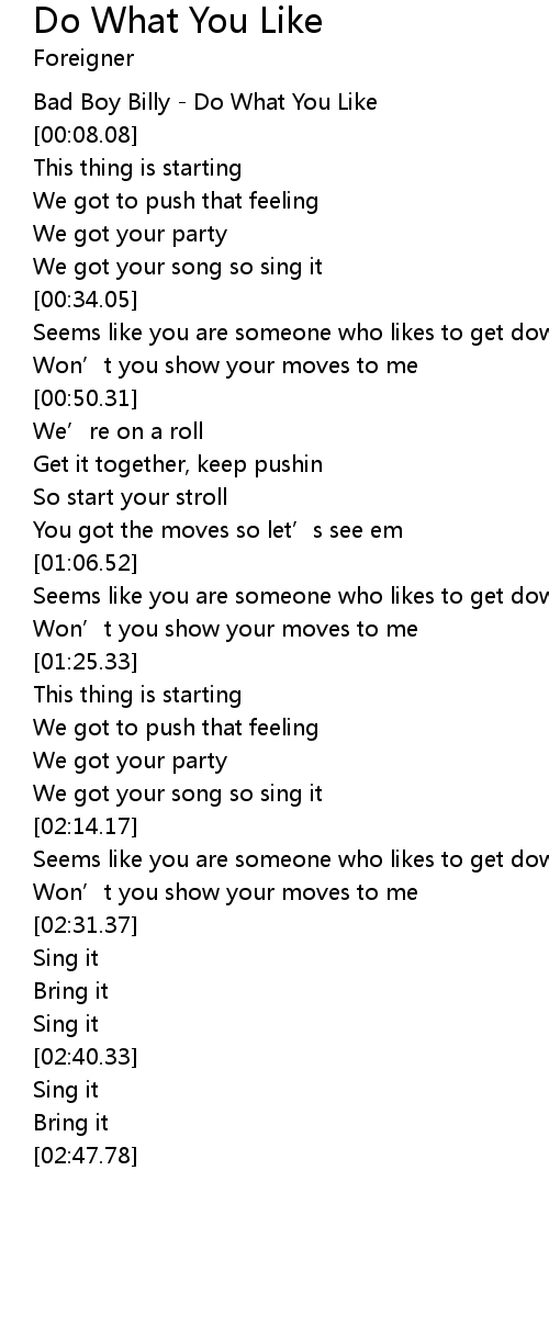 | [00:00.00] | Bad Boy Billy Do What You Like |