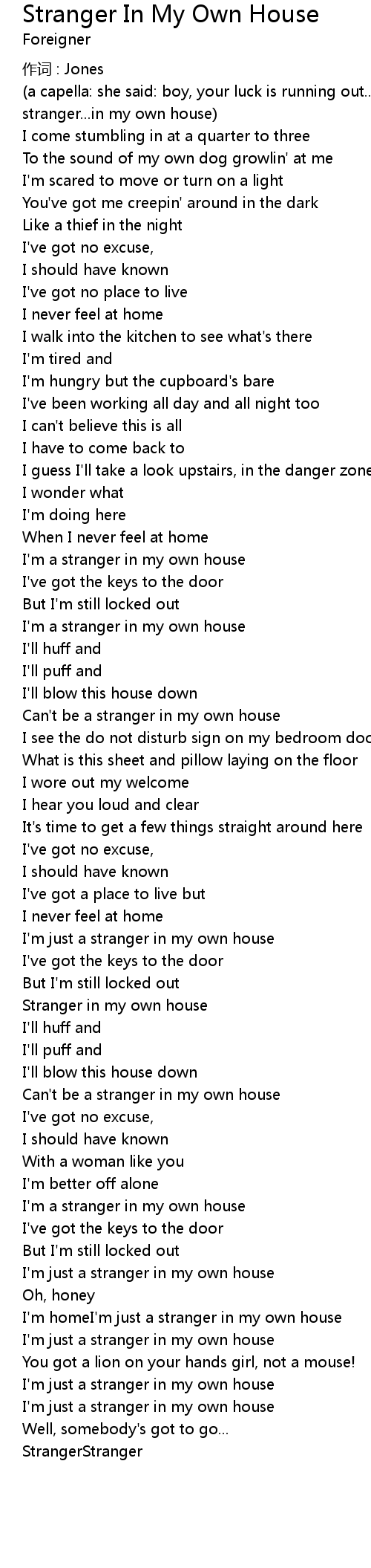 | Can' t be a stranger in my own house | |