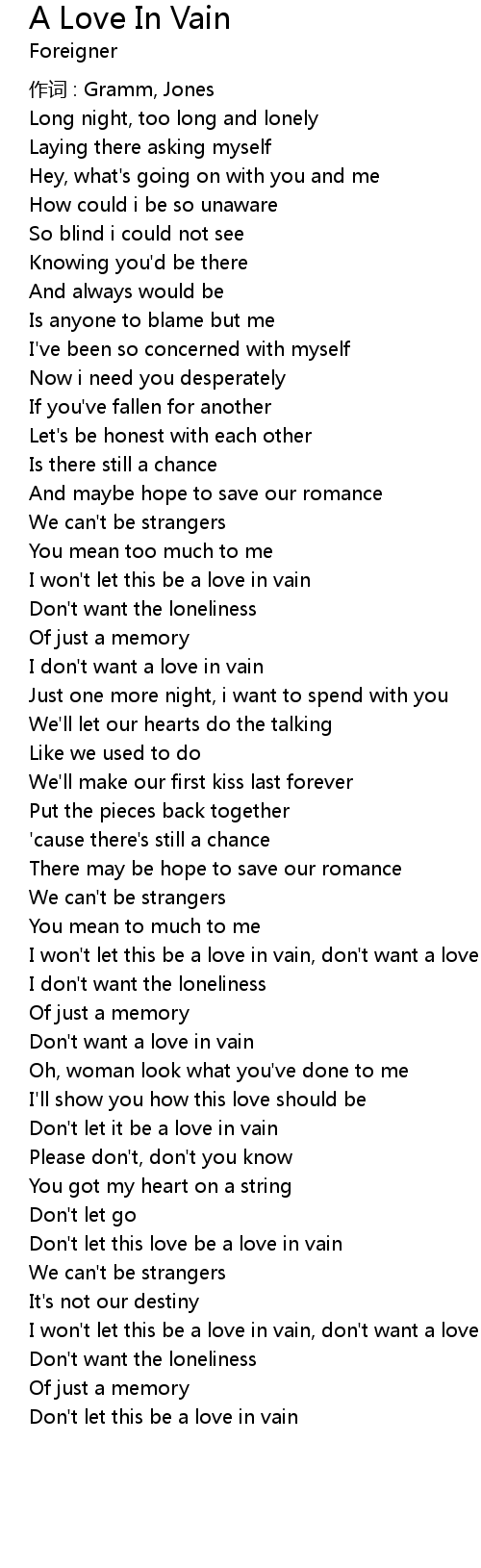 | I won't let this be a love in vain, don't want a love in vain | |