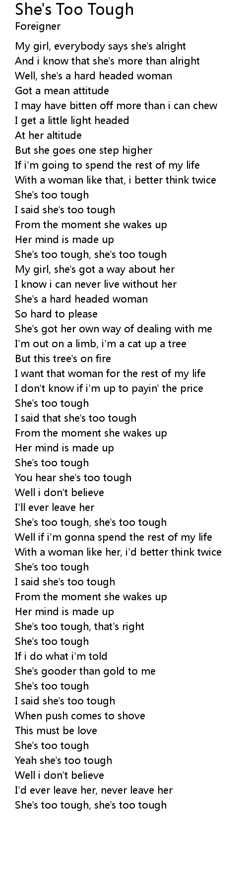 She's too tough, she's too tough |