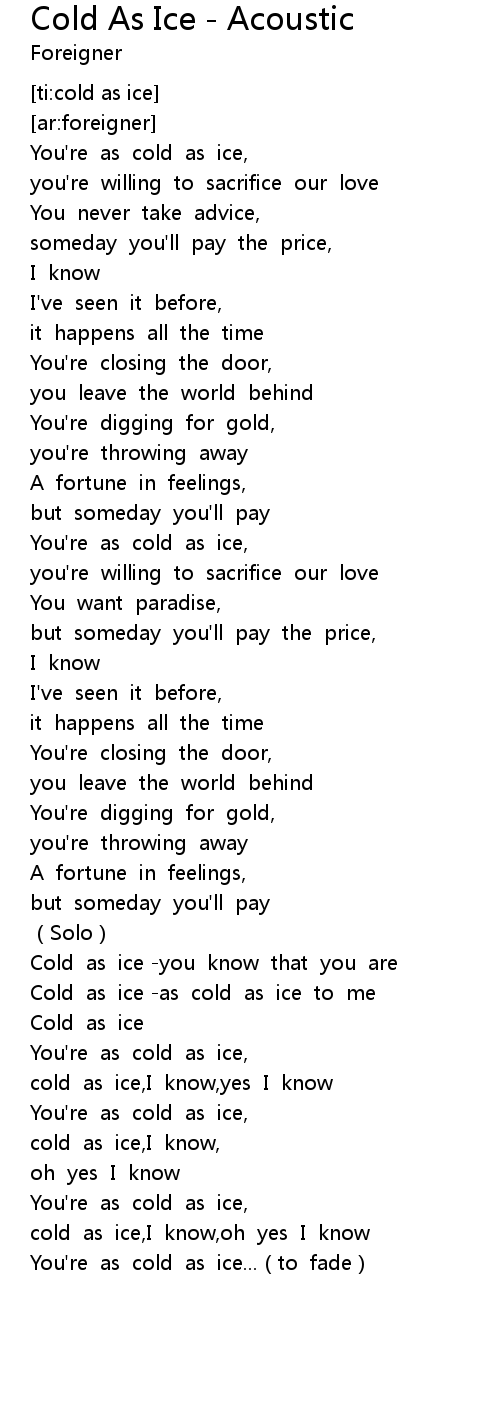 | [01:53.877] | Cold as ice -as cold as ice to me |