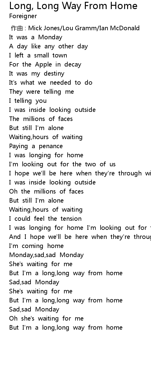 | [02:35.42] | But I'm a long,long way from home |