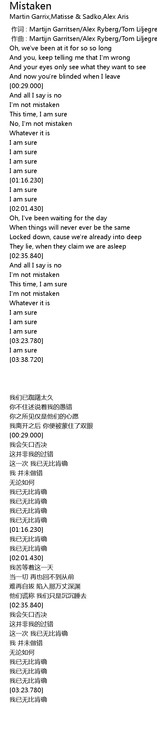 | [00:00.560] | zuo qu : Martijn Garritsen Alex Ryberg Tom Liljegren |