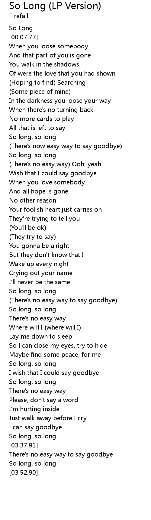 So long, so long |