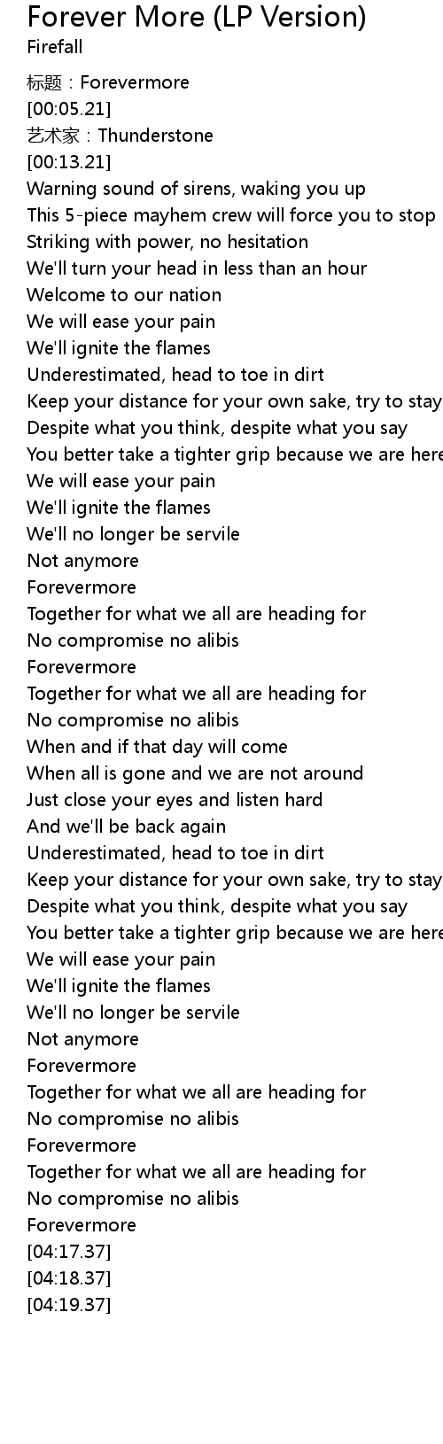 | [04:12.76] | Forevermore |