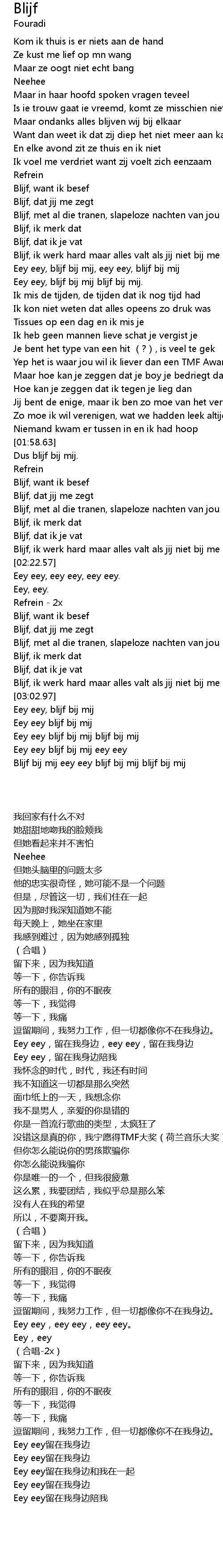 | [03:36.85] | Blijf bij mij eey eey blijf bij mij blijf bij mij |
