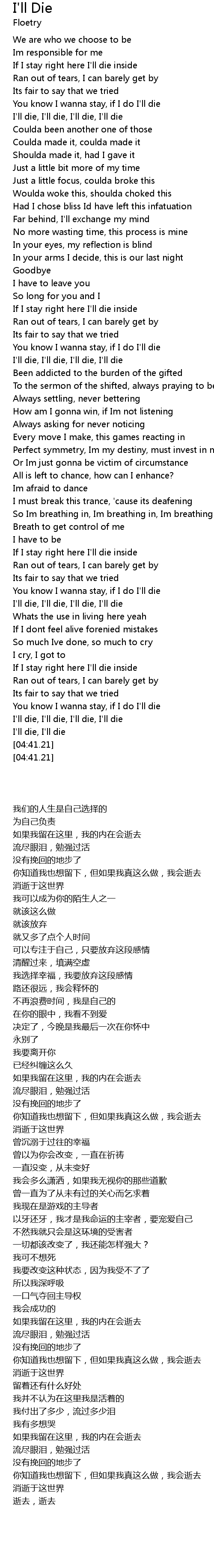 | [04:01.86] | I'll die, I'll die, I'll die, I'll die |