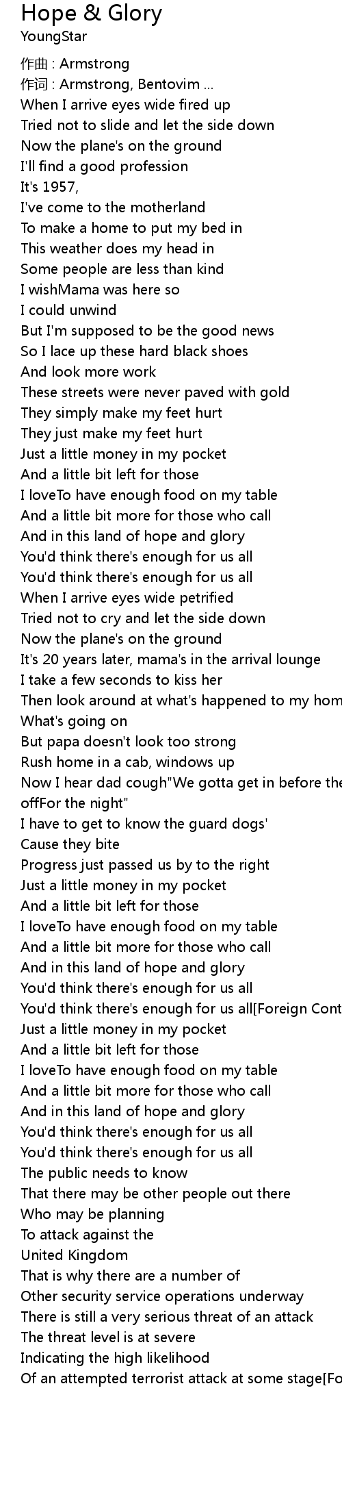 | Song | Hope & Glory |