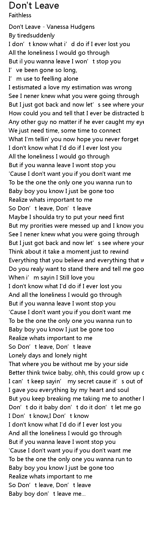 | [01:00.42] | So Don' t leave, Don' t leave |
