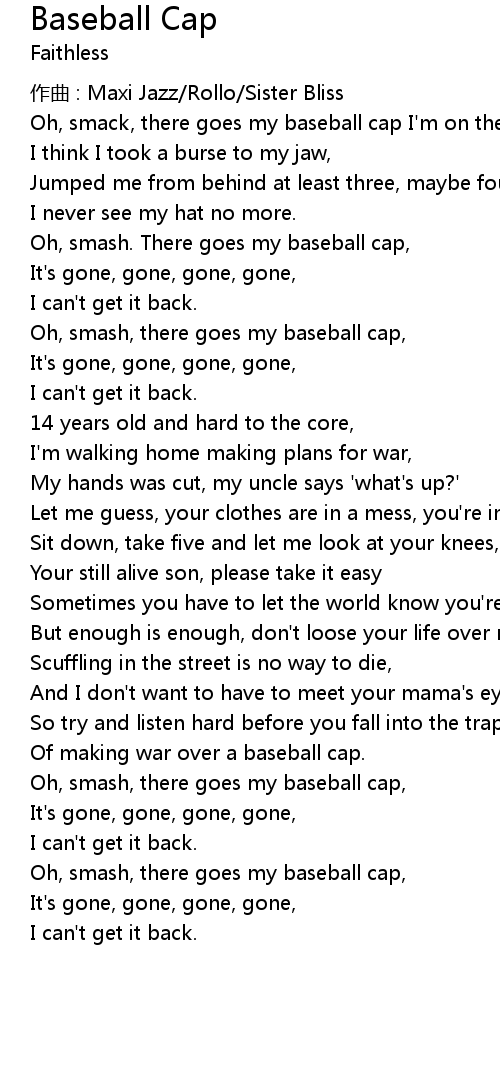 | Oh, smash, there goes my baseball cap, | |
